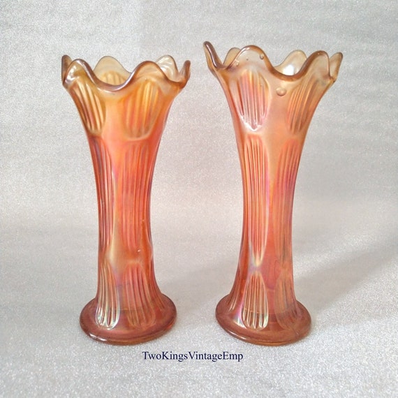 Fenton Orange Carnival Tall Glass Vases Fluted Rim In Diamond Etsy Uk